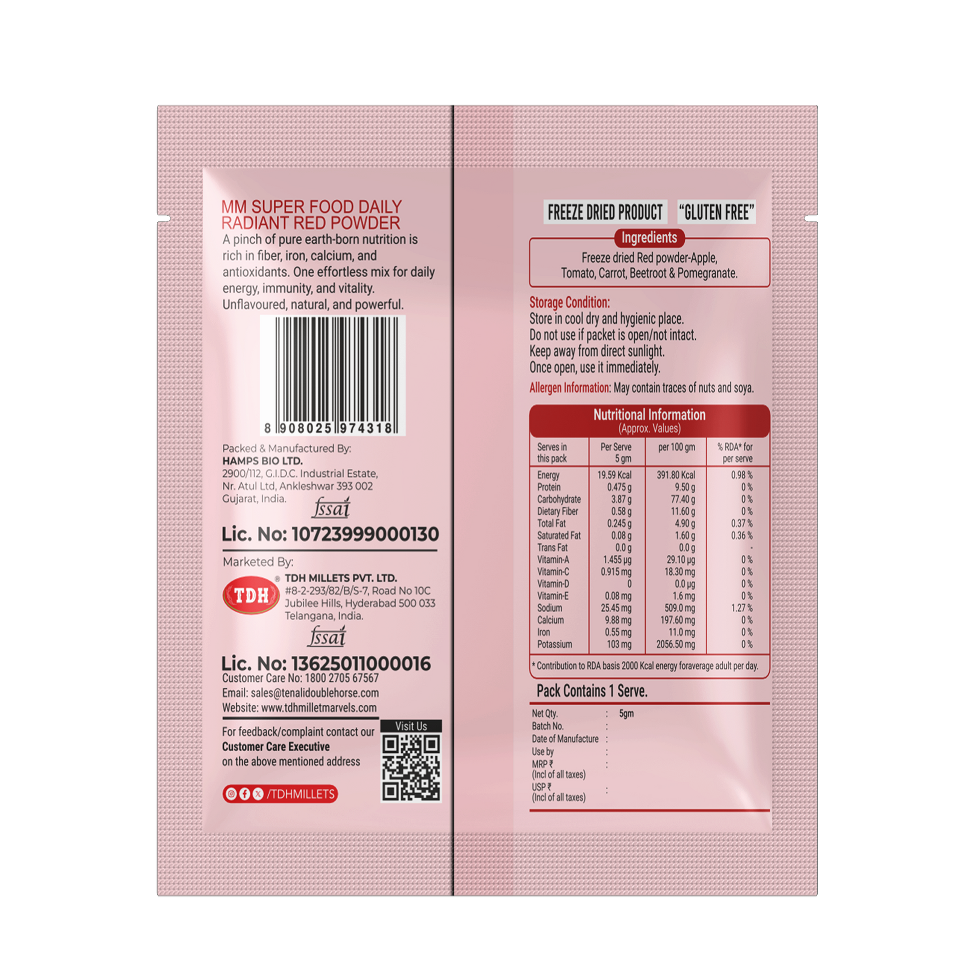 Daily Radiant Red Powder is a premium freeze-dried superfood blend made from nutrient-rich red fruits and vegetables including apple, tomato, carrot, beetroot, and pomegranate.